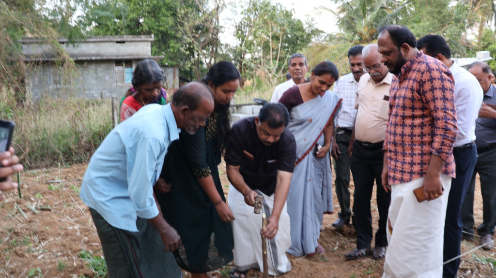 Foundation stone laid for latest Nirmal Bhavan at Thenkurussi which will be built for Haritha P. Stone laid by Hon. Alathur MLA Sri. KD Prasenan.
